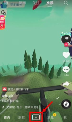 点击首页界面下方的“+”图标,进入视频拍摄界面。