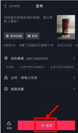拍摄完成后,点击界面右下方的“下一步”图标,进入视频发布界面。